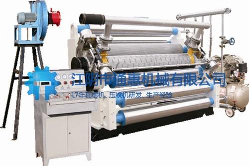 吸附式單面機采用高溫潤滑脂潤滑,方便可靠。 各導紙輥、予熱輥熱處理后,表面均經(jīng)精磨并鍍硬鉻處理。預熱輥、壓力輥、瓦楞輥均符合二類壓力容器國家標準,并經(jīng)專業(yè)機構驗證。
